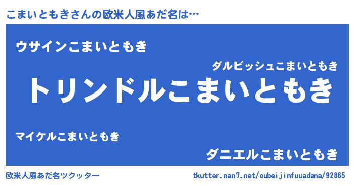 | 男性向けラノベタイトル風あだ名 | 『転生したらこまいともきだった件』 |