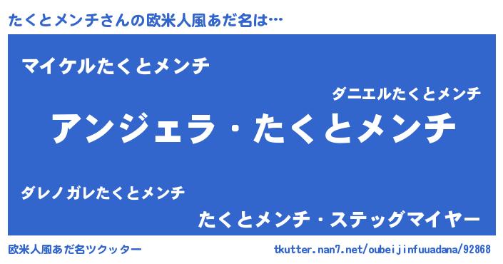 | 胡散臭い通販商品みたいなあだ名 | 『億万長者になれる霊験あらたかなお札…その名も「たくとメンチ」』 |