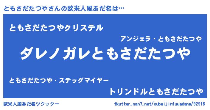 | 意味不明あだ名 | 『住所不定無職ともさだたつや(68歳)』 |