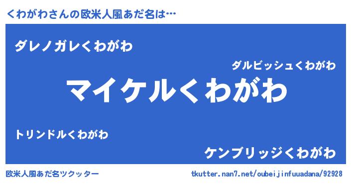男性向けラノベタイトル風あだ名 | 『くわがわの憂鬱』『クワガワスレイヤー』 |