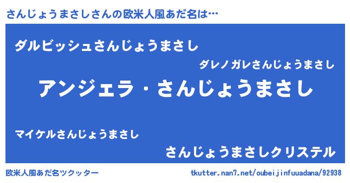 | 男性向けラノベタイトル風あだ名 | 『はたらくさんじょうまさしさま!』 |