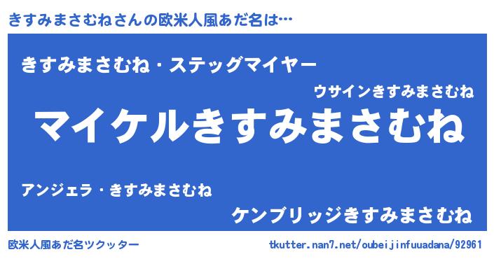 | 男性向けラノベタイトル風あだ名 | 『きすみまさむねの憂鬱』 |
