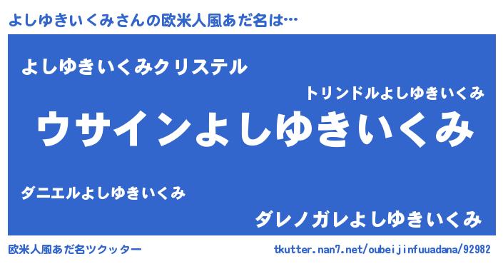 | 女子向けラノベタイトル風あだ名 | 『よしゆきいくみの卵を拾いまして』 |