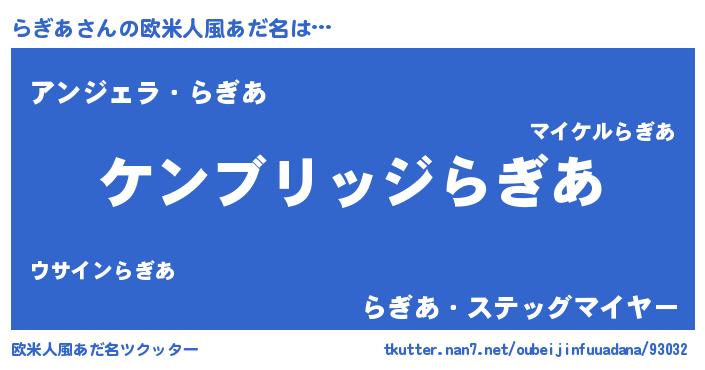 | 意味不明あだ名 | 『自称らぎあ』『ペロリンらぎあ』 |