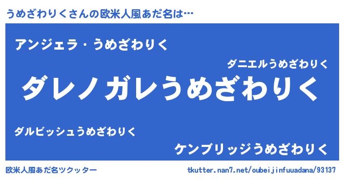 | ポケモン風あだ名 | 『ウーメイ』『ウメゴンZ』『ゼニウメ』 |