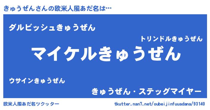 | 男性向けラノベタイトル風あだ名 | 『キュウゼンアートオンライン』 |
