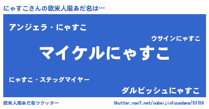 | 男性向けラノベタイトル風あだ名 | 『にゃすこの憂鬱』 |