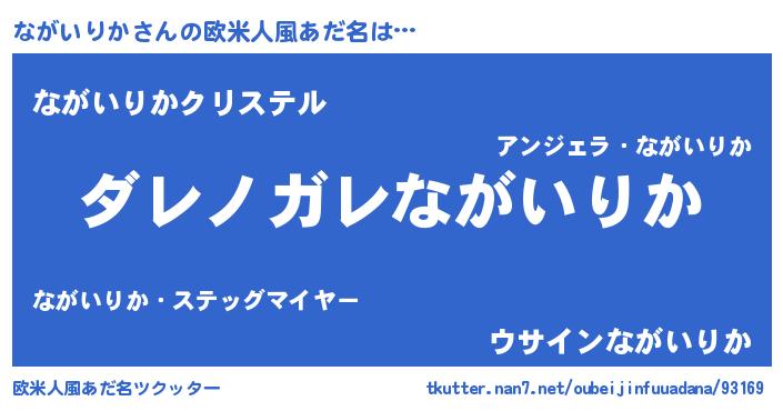 | 男性向けラノベタイトル風あだ名 | 『この素晴らしい世界にながいりかを!』 |