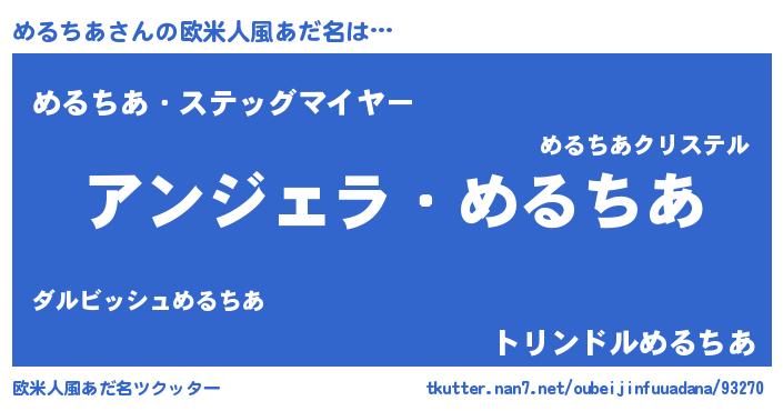 | 男性向けラノベタイトル風あだ名 | 『めるちあに滅ぼされるだけの簡単なお仕事です』 |
