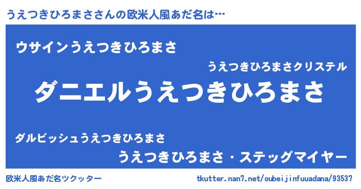 | 男性向けラノベタイトル風あだ名 | 『おまえをオタクにしてやるから、俺をうえつきひろまさにしてくれ! 』 |