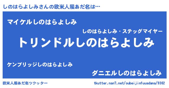 | 胡散臭い通販商品みたいなあだ名 | 『モテモテ間違いなしブレスレット…その名も「しのはらよしみ」』 |