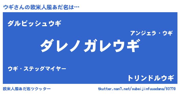 | 男性向けラノベタイトル風あだ名 | 『魔弾の王とウギ』『はたらくウギさま!』 |