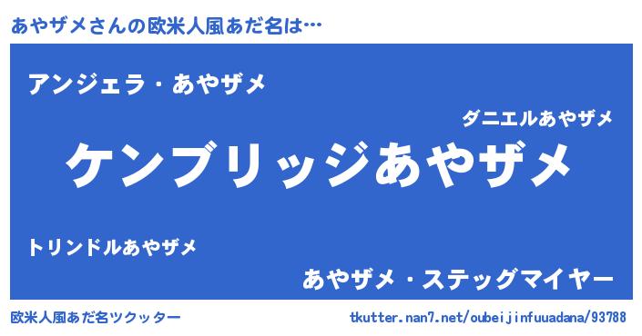 | 意味不明あだ名 | 『自称あやザメ』『しいたけ科あやザメ属』 |