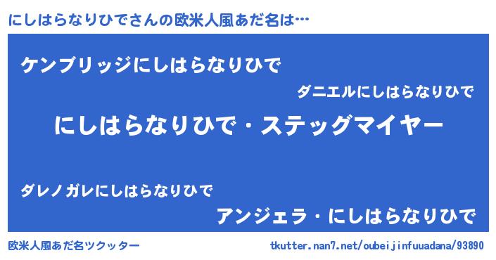 | 男性向けラノベタイトル風あだ名 | 『緋弾のニシハラナリヒデ』 |