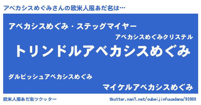 | 男性向けラノベタイトル風あだ名 | 『アベカシスメグミスレイヤー』 |