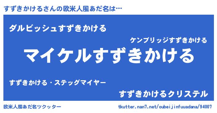 | 男性向けラノベタイトル風あだ名 | 『スズキカケルアートオンライン』 |