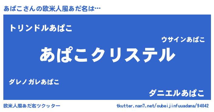 | 女子向けラノベタイトル風あだ名 | 『あぱこの雑貨屋さん』『あぱこ恋絵巻』 |