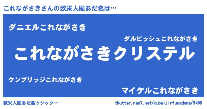 | 女子向けラノベタイトル風あだ名 | 『これながさき伯爵の花嫁』 |