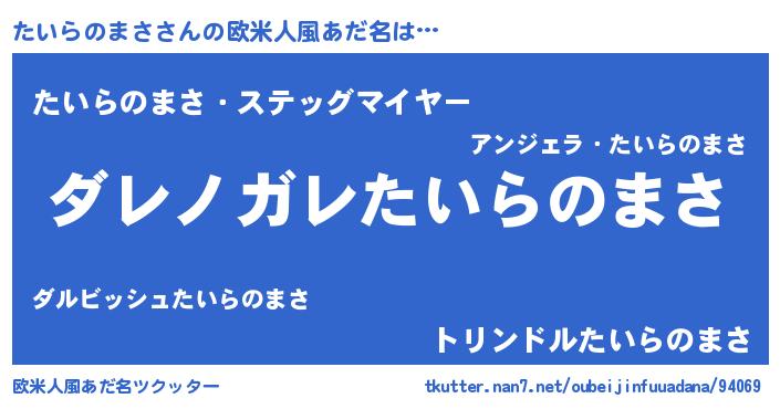 | 意味不明あだ名 | 『住所不定無職たいらのまさ(62歳)』 |