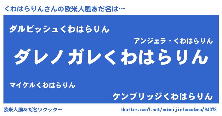 | 男性向けラノベタイトル風あだ名 | 『魔弾の王とくわはらりん』 |