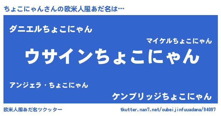 | 男性向けラノベタイトル風あだ名 | 『ちょこにゃんの嫁は女の子じゃないと思った?』 |