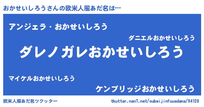 | 意味不明あだ名 | 『住所不定無職おかせいしろう(7歳)』 |