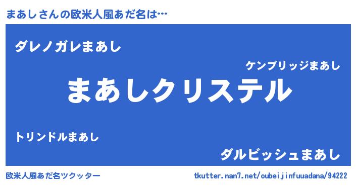 | 女子向けラノベタイトル風あだ名 | 『まあしの雑貨屋さん』『闇のまあし』 |
