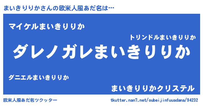 | 男性向けラノベタイトル風あだ名 | 『この素晴らしい世界にまいきりりかを!』 |