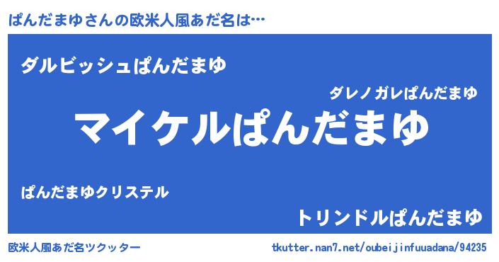 | 男性向けラノベタイトル風あだ名 | 『パンダマユアートオンライン』 |