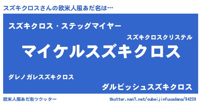 | 男性向けラノベタイトル風あだ名 | 『スズキクロスの憂鬱』 |