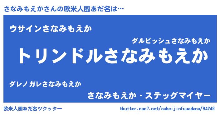 | 男性向けラノベタイトル風あだ名 | 『転生したらさなみもえかだった件』 |