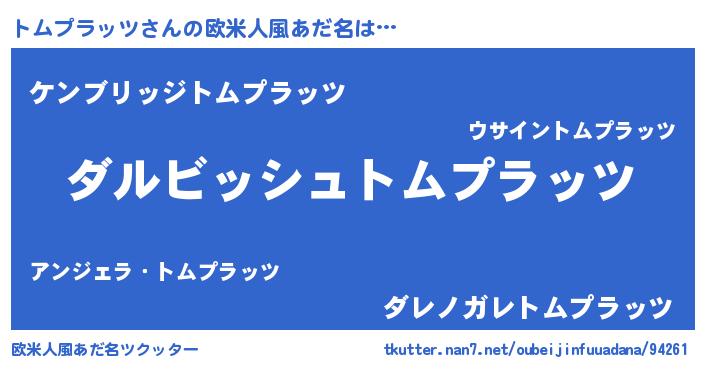 | 可愛いあだ名 | 『トムプラッツママ』『トムうちぇる』 |