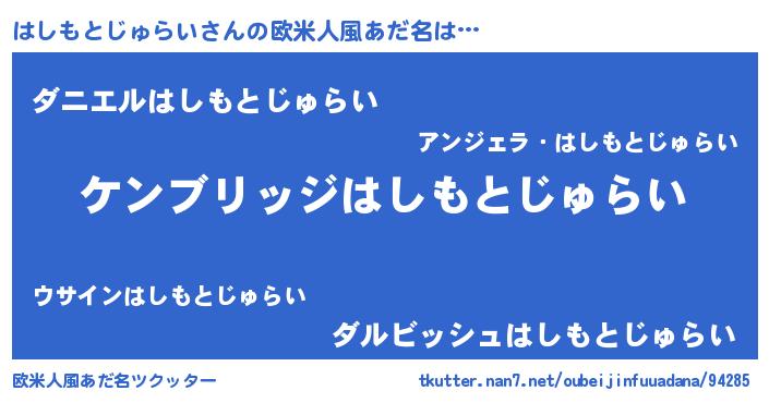| ヘコむあだ名 | 『はしもとじゅらい(震え声)』『はしぷりん』 |