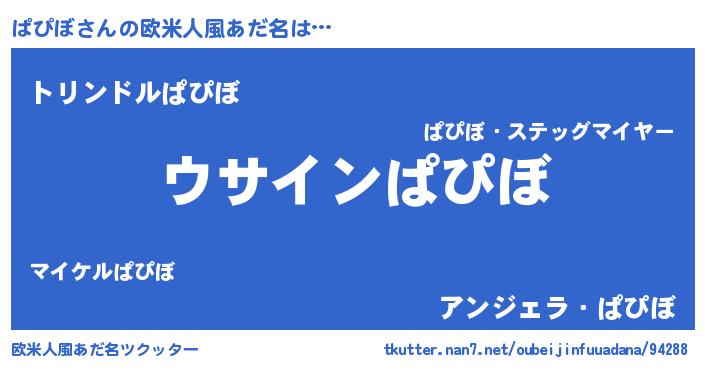 | 女子向けラノベタイトル風あだ名 | 『ぱぴぼの卵を拾いまして』 |