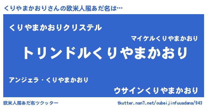 | 男性向けラノベタイトル風あだ名 | 『くりやまかおり~年齢イコール彼女いない歴の魔法使い~』 |