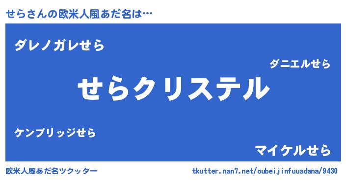 | 女子向けラノベタイトル風あだ名 | 『せらの雑貨屋さん』『死神せらの再婚』 |