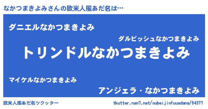 | 男性向けラノベタイトル風あだ名 | 『なかつまきよみ~年齢イコール彼女いない歴の魔法使い~』 |