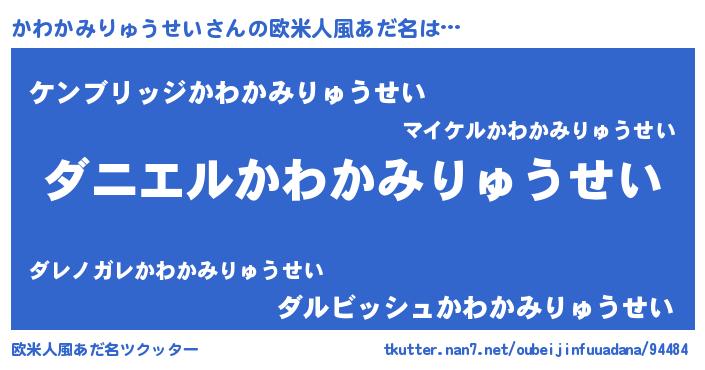 | 女子向けラノベタイトル風あだ名 | 『かわかみりゅうせい恋絵巻』 |