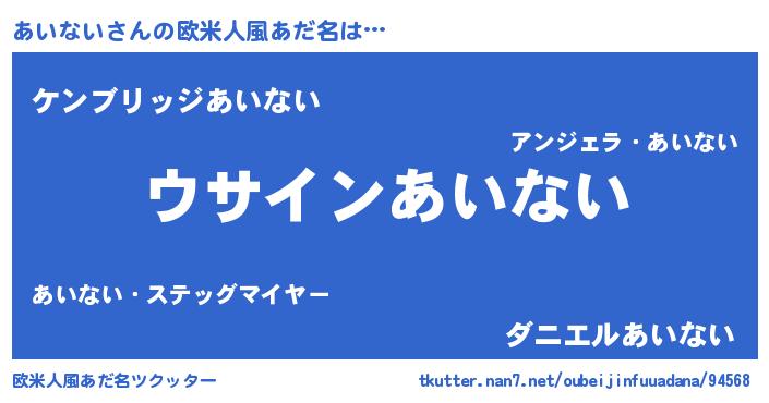 | 男性向けラノベタイトル風あだ名 | 『あいないの嫁は女の子じゃないと思った?』 |
