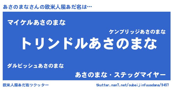 | 男性向けラノベタイトル風あだ名 | 『あさのまな~年齢イコール彼女いない歴の魔法使い~』 |