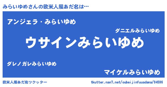 | 女子向けラノベタイトル風あだ名 | 『みらいゆめ様がみてる』 |