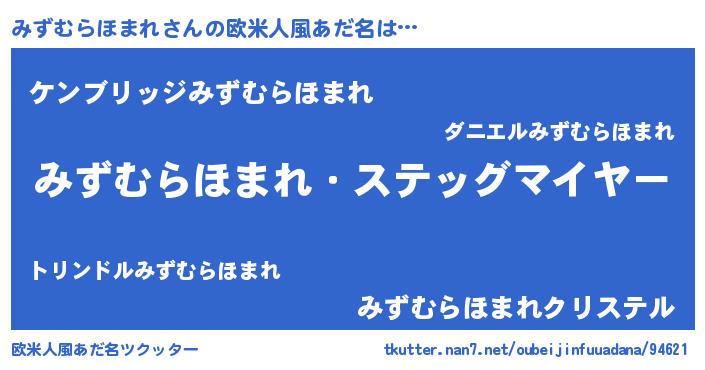 | 男性向けラノベタイトル風あだ名 | 『うちのみずむらほまれが世界を掌握している!』 |