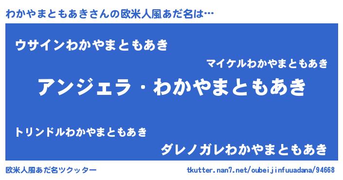 | 男性向けラノベタイトル風あだ名 | 『わかやまともあきに滅ぼされるだけの簡単なお仕事です』 |