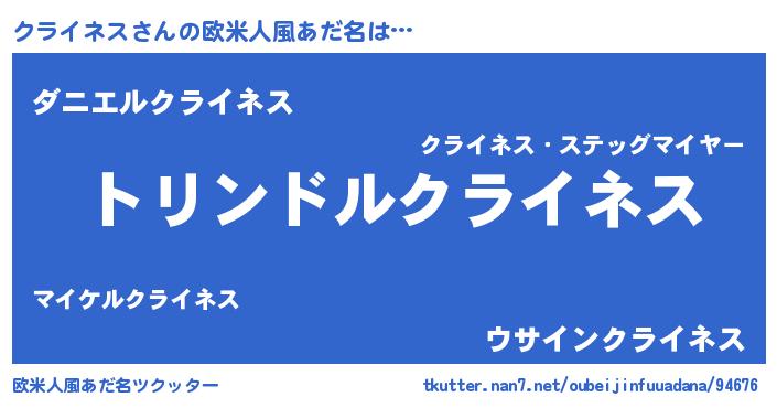 | 男性向けラノベタイトル風あだ名 | 『クライネス~年齢イコール彼女いない歴の魔法使い~』 |