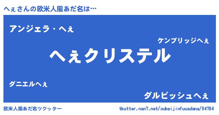 | 女子向けラノベタイトル風あだ名 | 『へぇの雑貨屋さん』『へぇの契約王妃』 |