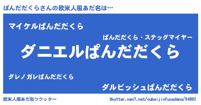 | 男性向けラノベタイトル風あだ名 | 『おまえをオタクにしてやるから、俺をぱんだだくらにしてくれ! 』 |
