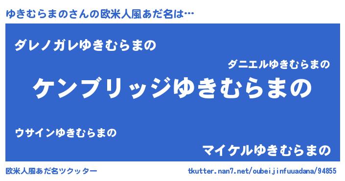 | 女子向けラノベタイトル風あだ名 | 『ゆきむらまのなんてお断りですっ。』 |