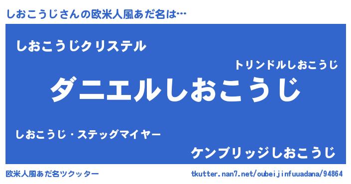 | 男性向けラノベタイトル風あだ名 | 『おまえをオタクにしてやるから、俺をしおこうじにしてくれ! 』 |
