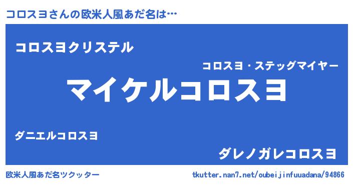| ヒーロー風カッコイイあだ名 | 『スーパーコロスヨ』『仮面コロダー』 |