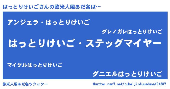 | 男性向けラノベタイトル風あだ名 | 『緋弾のハットリケイゴ』 |